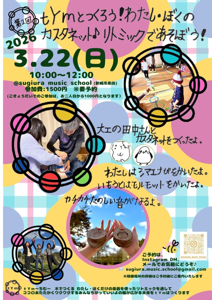 大工さんと一緒に、カスタネット作りを行います。かわいい丸太に、自分で描いたイラストを刻印し、世界にひとつだけのカスタネットを作ります。 完成したカスタネットからは、カチカチと楽しい音が鳴ります♪完成したら、みんなで音楽を楽しみましょう!